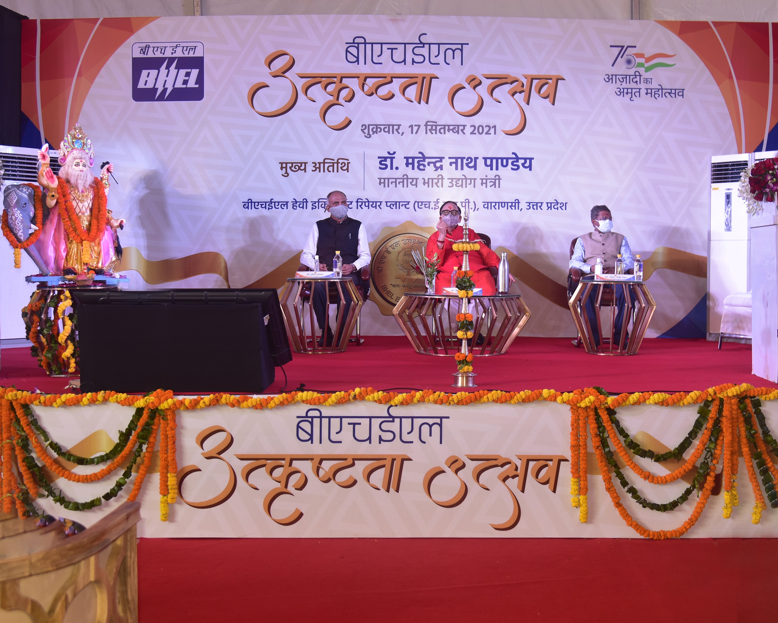 वाराणसी, 17 सितंबर: भारत हेवी इलेक्ट्रिकल्स लिमिटेड (बीएचईएल) ने अपना वार्षिक उत्कृष्टता उत्सव पूरे उत्साह के साथ मनाया। इस उत्सव में प्रतिभावान कर्मचारियों को कंपनी के 'एक्सेल पुरस्कार' प्रदान किए गए। इस भव्य समारोह में मुख्य अतिथि के रूप में माननीय केंद्रीय भारी उद्योग मंत्री डॉ. महेंद्र नाथ पांडेय ने अपनी गरिमामय उपस्थिति से कार्यक्रम की शोभा बढ़ाई तथा कर्मचारियों को पुरस्कार प्रदान किए। इस अवसर पर बीएचईएल के अध्यक्ष एवं प्रबंध निदेशक, डॉ. नलिन सिंघल, निदेशक मण्डल के निदेशक तथा अन्य वरिष्ठ अधिकारी भी उपस्थित रहे। इस कार्यक्रम में कंपनी की देशभर में स्थित सभी विनिर्माण इकाइयों, प्रभागों व कार्यालयों के वरिष्ठ अधिकारी वीडियो कॉन्फ्रेंसिंग के माध्यम से ऑनलाइन जुड़े।