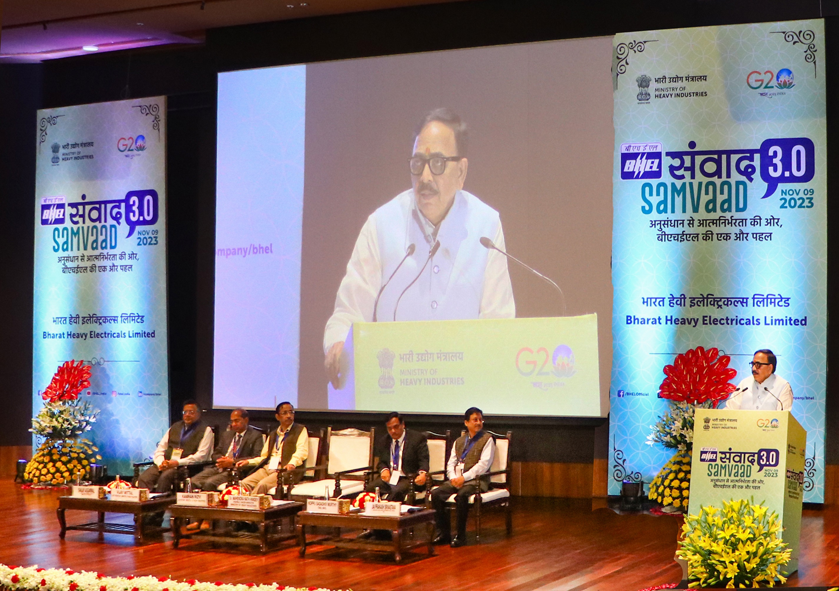 नई दिल्ली, 10 नवंबर: माननीय प्रधानमंत्री जी के भारत को आत्मनिर्भर बनाने के विजन के अनुसरण में, भारत हेवी इलेक्ट्रिकल्स लिमिटेड (बीएचईएल) ने आज भारत मंडपम में घरेलू व्यवसाय भागीदारों, उद्योग संघों, शिक्षाविदों और अनुसंधान संस्थानों, सरकारी संस्थानों एवं अन्य मंत्रालय जैसे सीईऐ, डीओई, डीपीआईआईटी, एम्ओपी, स्टील मंत्रालय, एम्ईआईटीवाय के साथ संवाद का तीसरा संस्करण ‘बीएचईएल संवाद 3.0’ का आयोजन किया। भारी उद्योग मंत्रालय के तत्वावधान में आयोजित यह कार्यक्रम 'अनुसंधान एवं नवाचार से विकास' विषय पर केन्द्रित था।